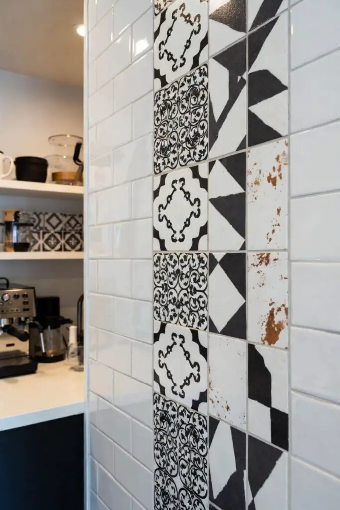 Adding a tile backsplash behind your kitchen coffee bar is a game-changer for both style and practicality. Not only does a tile backsplash protect your walls from spills, splashes, and coffee stains, but it also lets you inject creativity through color and pattern.